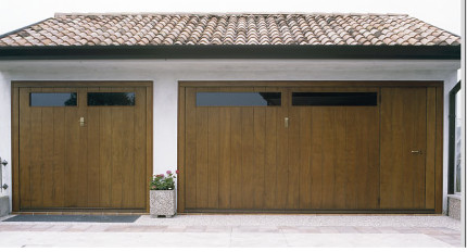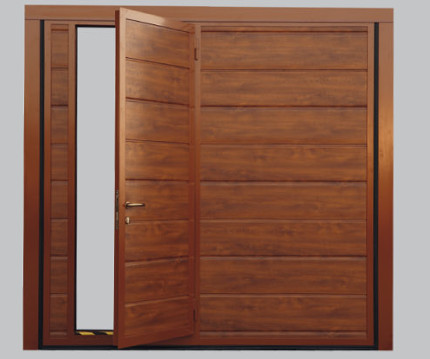 Con pannello metallico coibentato effetto legno.